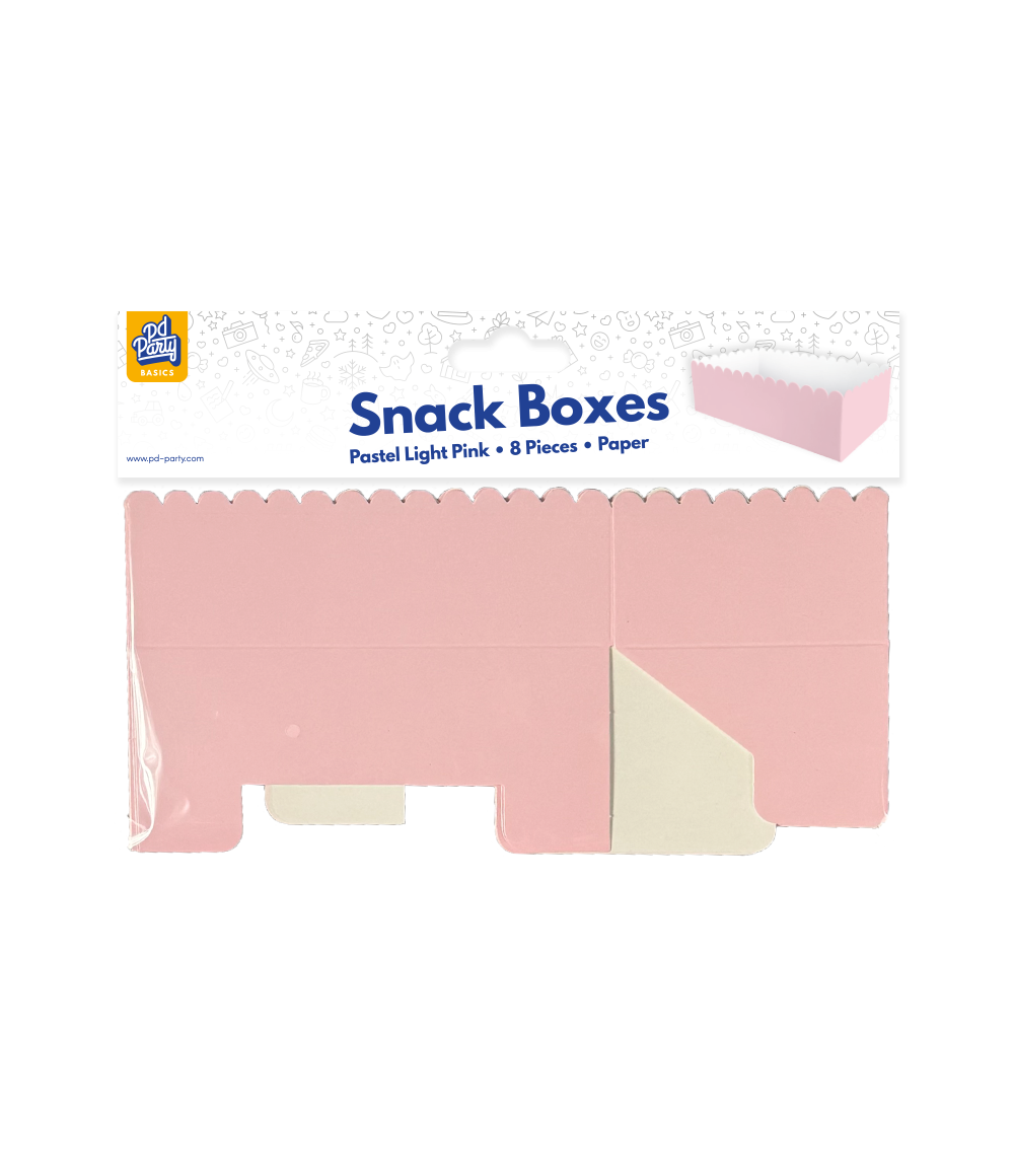 Le scatole per snack - Rosa chiaro pastello sono perfette per servire snack come popcorn e patatine durante una festa che ha come tema il rosa pastello. Queste scatole per snack misurano 7 x 7 x 12,5 cm, sono confezionate in 8 pezzi e si abbinano perfettamente agli altri articoli in rosa pastello come coriandoli, tovaglioli, piatti, tovaglie, tazze e bandiera. Presenta questi articoli insieme in modo che sia subito chiaro al cliente in cosa consiste questa collezione. Queste scatole per merenda sono realizzate in carta e sono quindi una scelta ecologica