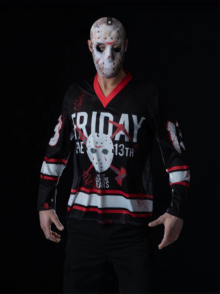 Diventa un vero Jason Voorhees con questo costume da top da hockey. Ideale da abbinare a una maschera coordinata per un autentico look horror ad Halloween o per feste a tema.