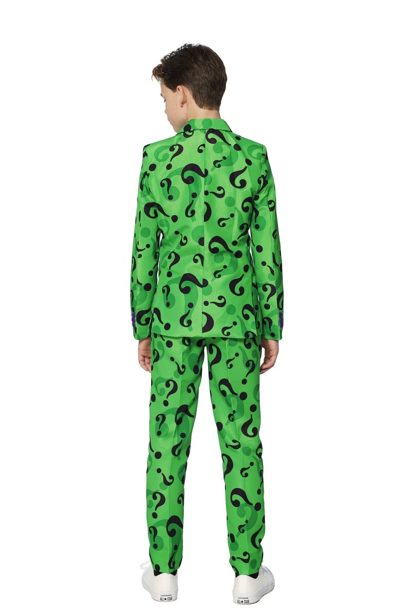 Indovinello: quale criminale cerebrale ama lasciare indizi a Batman? Hai ragione, è l'Enigmista. Vesti il tuo bambino con stile come l'astuto criminale questo Halloween, con questo costume ufficiale da Enigmista™. Il costume slim fit comprende una giacca, un pantalone e una cravatta. I pantaloni sono dotati di una cintura regolabile per una vestibilità perfetta
