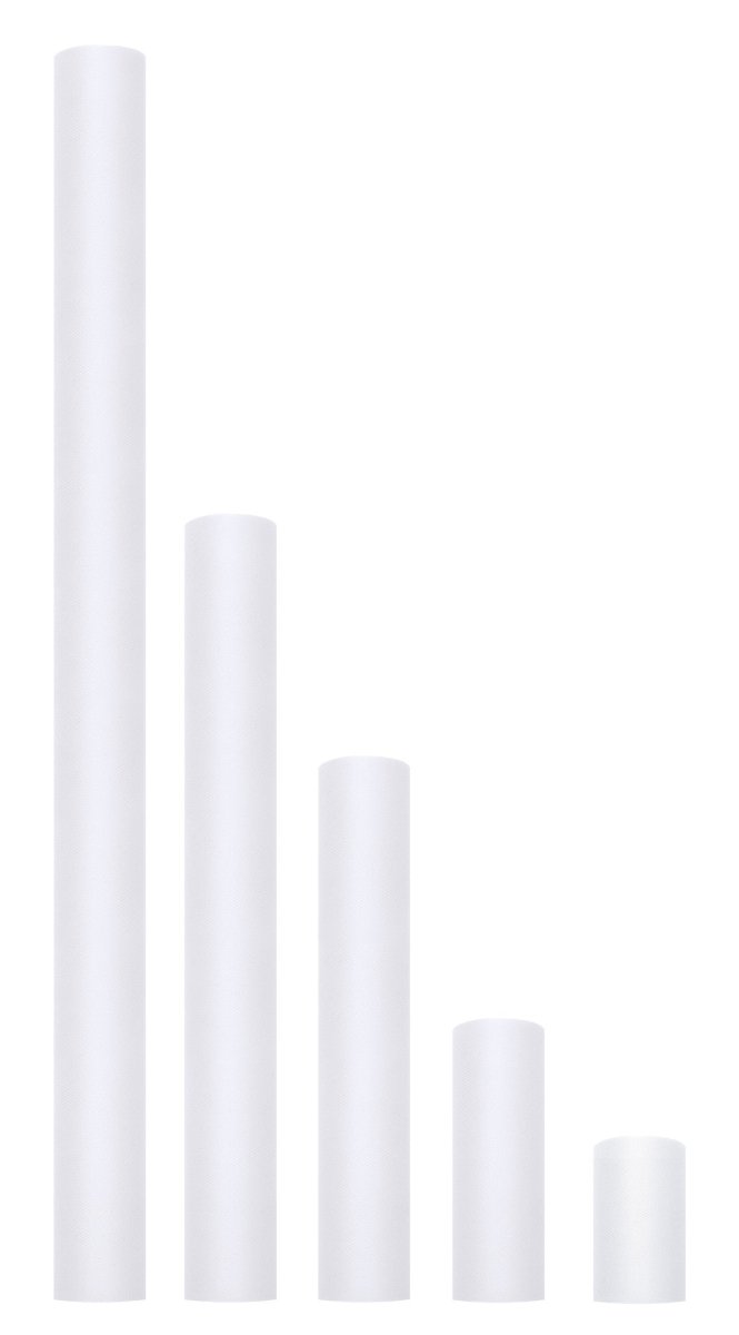 Contenuto: tulle liscio, bianco, in rotolo, dimensioni 0,15x9 metri.