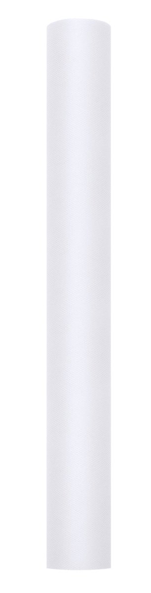 Contenuto: tulle liscio, bianco, in rotolo, dimensioni 0,5x9 metri. (1 pezzo/9 lm)